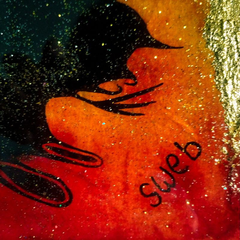 Technique et matériaux : Technique Mixte collage / aquarelle, papier de soie, feuille d’or, posca, résine