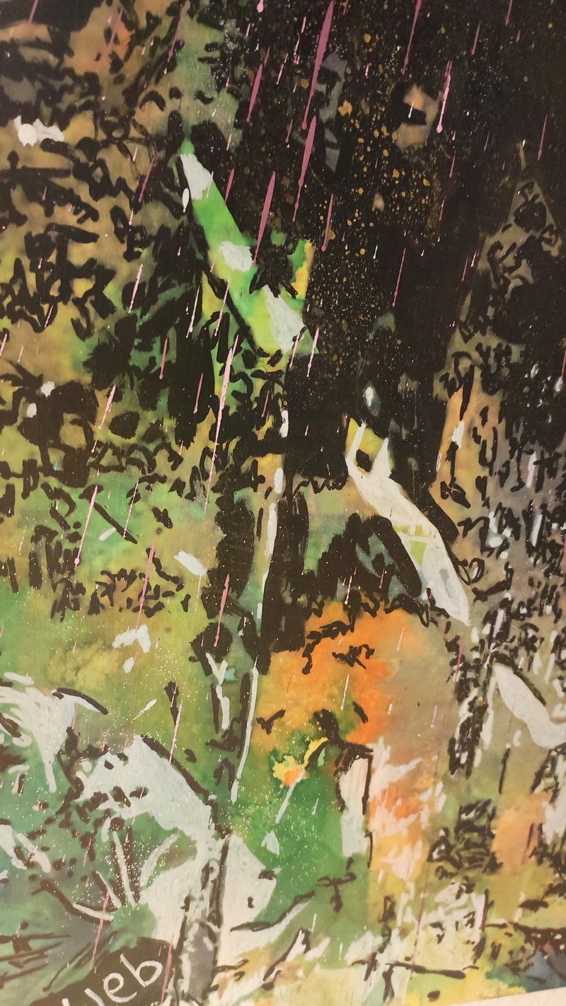Technique Mixte collage / aquarelle, papier de soie, feuille d’or, posca