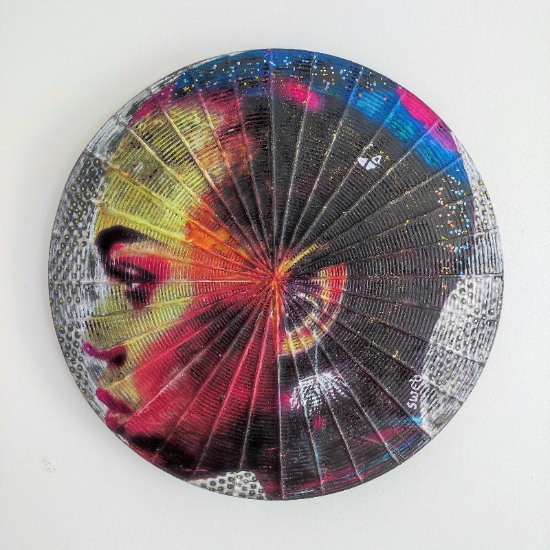 Technique et matériaux : Technique Mixte collage / aquarelle, papier de soie, feuille d’or, posca
