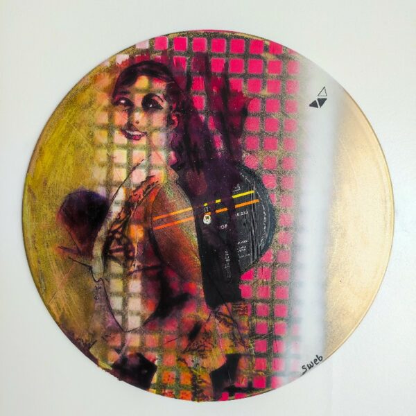 Technique et matériaux : Technique Mixte collage / aquarelle, papier de soie, bombe aérosol, posca, paillette