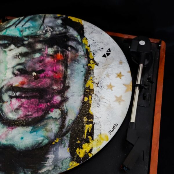Technique et matériaux : Technique Mixte collage / aquarelle, papier de soie, bombe aérosol, posca, paillette